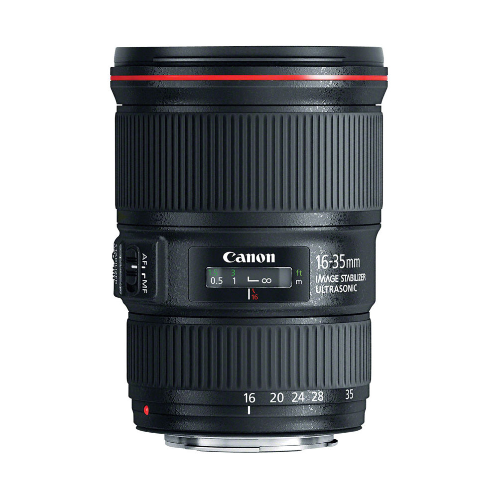 لنز کانن Canon EF 16-35mm f/4L IS USM یک لنز از سری L کانن است که طیف وسیعی از فاصله کانونی با زاویه دید گسترده را پوشش می‌دهد که با حداکثر دیافراگم ثابت f/4، طراحی اپتیکال پیچیده و استفاده از تثبیت‌کننده تصویر برای ایجاد تصاویر واضح متمایز می‌شود. . دو عنصر پراکندگی بسیار کم برای کاهش بسیار زیاد حاشیه‌های رنگ و انحرافات رنگی در سراسر محدوده زوم برای وضوح و دقت رنگ بالا استفاده می‌شود، و همچنین یک پوشش Super Spectra برای سرکوب شعله‌ور و شبح برای بهبود کنتراست اعمال شده است. سه عنصر کروی نیز مشخص شده اند و به کنترل اعوجاج و به حداقل رساندن انحرافات کروی برای بهبود وضوح کمک می کنند.
