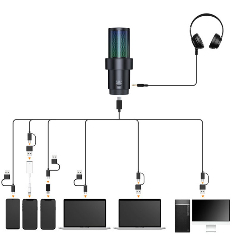 این میکروفون معمولاً دارای اتصالات متنوعی است که امکان اتصال به دستگاههای