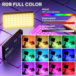– علاوه بر رنگهای RGB، این ویدئو لایت نور سفید با دمای رنگ قابل تنظیم (از 3200K تا 9500K) ارائه میدهد.