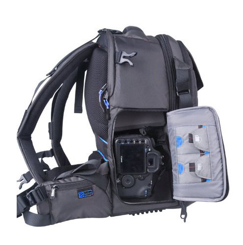 طراحی داخلی کوله به گونهای است که دسترسی به تجهیزات عکاسی را آسان میکند.